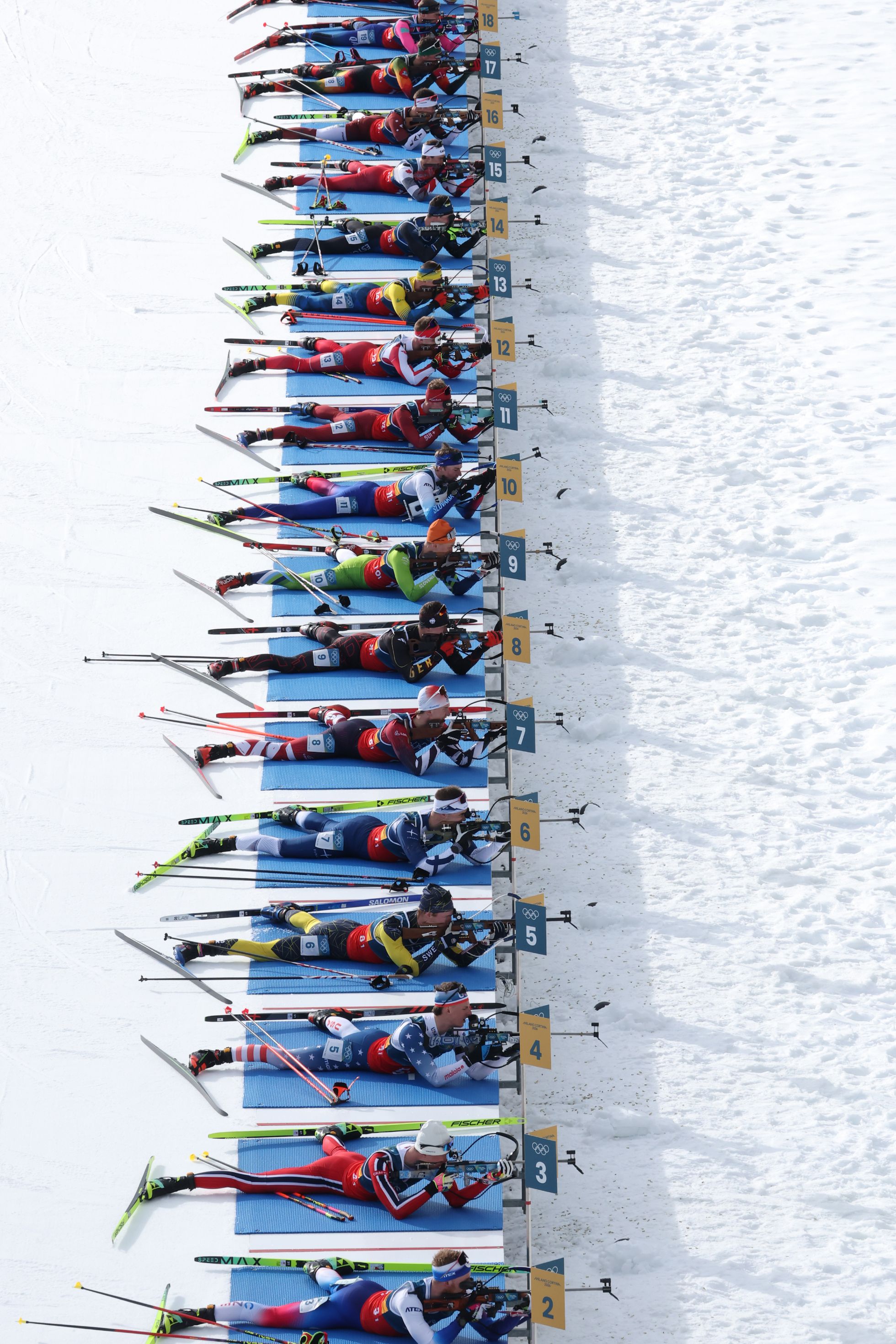 Bruce Bennett / Reuters / Scanpix / LETA Шайба в воротах женской хоккейной команды Чехии во время матча четвертьфинала со Швейцарией. Хоккеистки из Швейцарии в итоге заняли третье место, а золото Олимпиады досталось хоккейной команде из США. Милан, 6 февраля 2026 годаJeff Pachoud / AFP / Scanpix / LETA Казахстанский фристайлер-акробат Роман Иванов наблюдает за сокомандником Динмухаммедом Райымкуловым, пока тот разминается перед соревнованиями. Первое место на соревнованиях занял спортсмен из Китая Ван Синьди. Ливиньо, 20 февраля 2026 годаMarco Bertorello / AFP / Scanpix / LETA Итальянец Доминик Фишналлер участвует в третьем заезде соревнований по санному спорту среди мужчин. На фоне участка трассы в Кортина-дʼАмпеццо — Доломитовые Альпы. Фишналлер родился в соседнем регионе, Трентино — Альто-Адидже. Первое место во время одиночного заезда занял представитель Германии Макс Лангенхан. 8 февраля 2026 годаDavid Ramos / Getty Images Эстонец Хенри Сильдару во время тренировки по слоупстайлу. Ливиньо, 5 февраля 2026 года. Сильдару занял 21-е место, на первом — норвежец Бирк РуудDavid Ramos / Getty Images Сноубордист Чейз Блэквелл (США) разминается перед соревнованием по хафпайпу. Ливиньо, 11 февраля 2026 года. Блэквелл занял 15-е место, золото — у спортсмена из Японии Юто ТоцукиFabrizio Bensch / Reuters / Scanpix / LETA Казахстанский фигурист Михаил Шайдоров после выступления в произвольной программе. Милан, 13 февраля 2026 года. Шайдоров взял золото в одиночном мужском фигурном катании. Основной фаворит, американец Илья Малинин, не просто остался без наград, но и оказался на 15-м месте из-за двух падений и ошибок в произвольной программе. Серебряный призер, лидер японской сборной Юма Кагияма и француз Адам Сяо Хим Фа, который был третьим после короткой программы, тоже упали во время выступленияOmega / Reuters / Scanpix / LETA Фотофиниш чехословацкого влчака по кличке Назгул во время лыжных гонок среди женщин. Лаго, 18 февраля 2026 года. Как выяснили журналисты, пес жил с родственниками одного из организаторов Игр. Хозяйка Назгула Алиса Вареско, в тот день уехавшая из Лаго, позже рассказала, что пес, по всей видимости, искал ее, потому что привык ходить на прогулку в направлении, где расположена лыжная трасса. Спортсменки, с которыми соревновался Назгул, отметили, что неожиданное появление пса не помешало им завершить гонку (победители к тому моменту уже финишировали). После пересечения финишной черты Назгул последовал примеру спортсменок и остановился. Золото в лыжных гонках среди женщин взяла сборная ШвецииHarry How / Getty Images Спортсменки после пересечения финишной черты во время женской биатлонной спринтерской гонки на 7,5 километра. Антхольц-Антерсельва, 14 февраля 2026 года. Золотую медаль выиграла биатлонистка из Норвегии Марен КиркейдеOdd Andersen / AFP / Scanpix / LETA Нога норвежца Магнуса Недреготтена во время кругового турнира по керлингу в смешанных парах между Норвегией и Южной Кореей. Кортина-дʼАмпеццо, 9 февраля 2026 года. Первое место заняла команда из ШвецииKai Pfaffenbach / Reuters / Scanpix / LETA Норвежский лыжник Йоханнес Клэбо празднует победу в командном спринте среди мужчин.По числу золотых медалей, выигранных на Олимпиадах, Клэбо обошел предыдущих рекордсменов (и своих соотечественников) — биатлониста Уле-Эйнара Бьорндалена и лыжников Бьорна Дэли и Марит Бьорген, у каждого из которых по восемь золотых наград. На Олимпиаде-2026 в Италии Клэбо взял шесть золотых медалей. Те