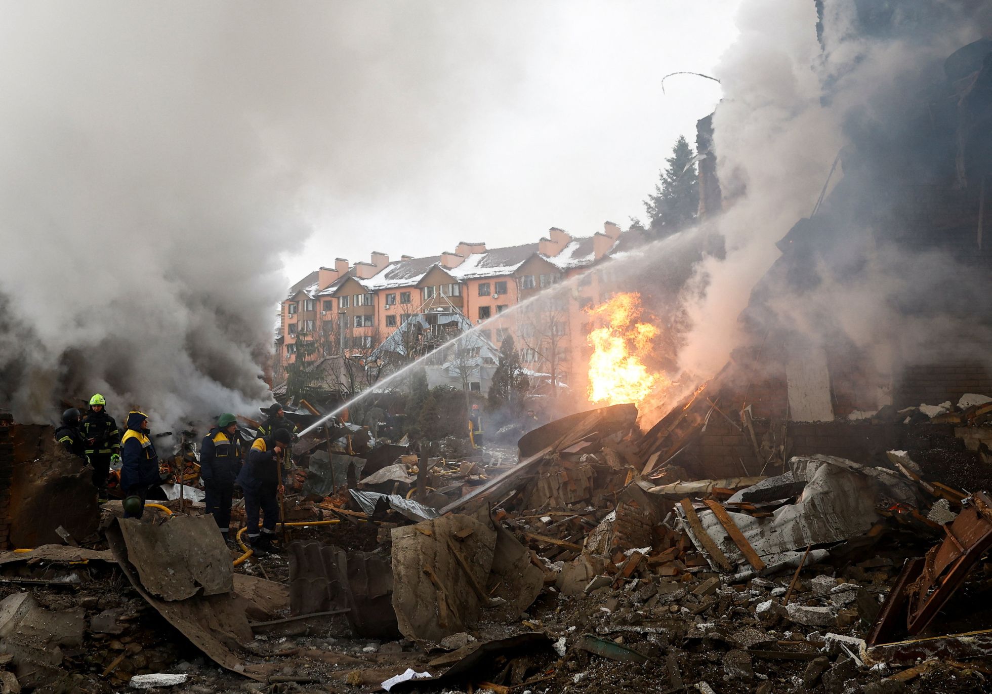 Под ударом оказались в том числе Киев и окрестности. В Фастовском районе на юго-западе Киевской области в результате российского удара погиб 49-летний местный житель, сообщил глава военной администрации Николай Калашник. Пострадавшие есть и в других районах — Бориспольском, Вышгородском, Обуховском и Бучанском. Всего раненых 15 человек, в их числе четверо детей. В самом Киеве, по словам мэра столицы Украины Виталия Кличко, есть повреждения в Днепровском районе, где обломок ракеты упал у подстанции скорой помощи, а также в Святошинском, Деснянском и Подольском районах.