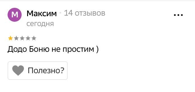 После того, как история Додобони получила огласку, на «Додо Пиццу» в соцсетях обрушилась критика. Клиенты потребовали уволить новую управляющую, они также рассказывали, что удаляют приложения «Додо Пиццы» и отказываются посещать заведение. Вот, например, комментарии жителей Екатеринбурга в онлайн-картах, которые процитировало издание Itʼs My City: