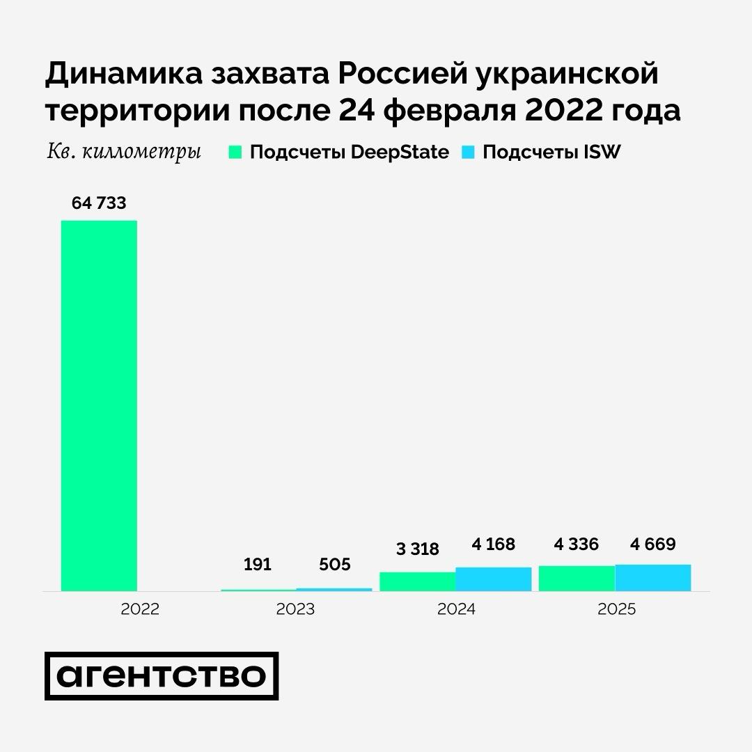 - ️И это, как подчеркивает The Economist, самое большое годовое приобретение России с 2023 года: всего за три последних года войны Россия захватила, по подсчетам Reuters, около 1,3% украинской территории.