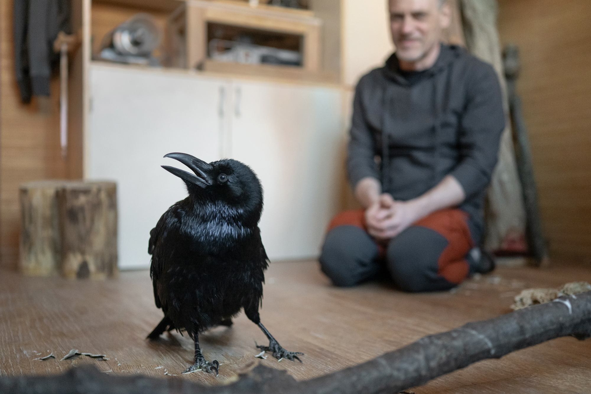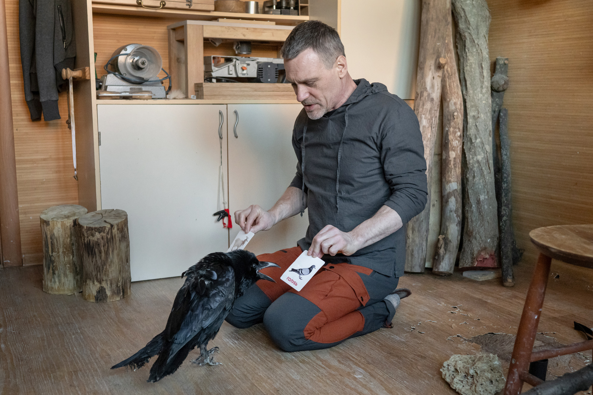 Сергей Быков — мастер по изготовлению музыкальных инструментов, а в прошлом — профессиональный спортсмен. Уже почти год он ухаживает за вороненком Феней, выпавшим из гнезда в Удельном парке, и рассказывает об этом в интернете.