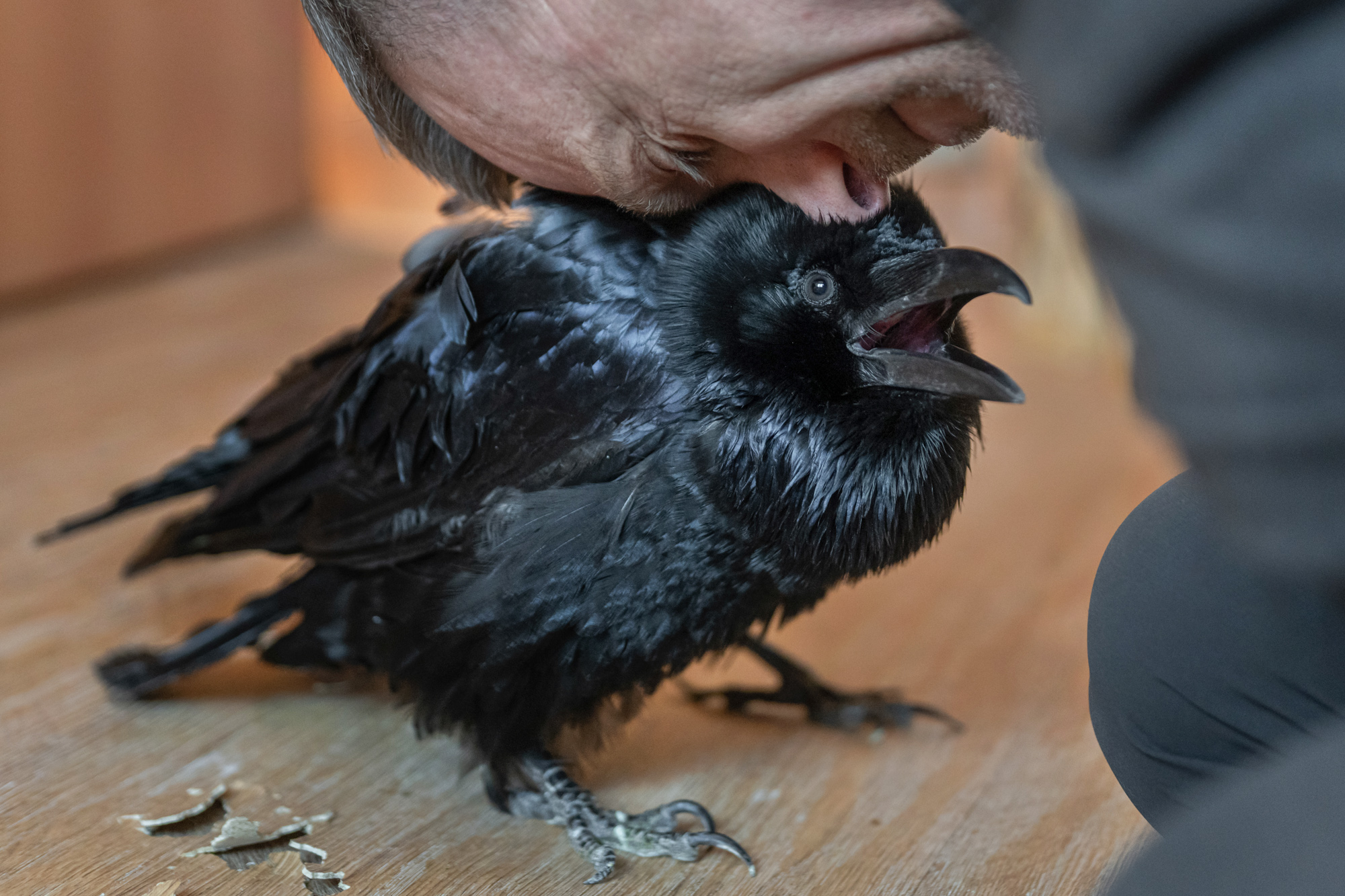 Я много раз кидал клич в группе, но сейчас с ним занимаются лишь две волонтерки. Одна приходит к нам домой, а вторая гуляет в парке. Феня социализирован, прекрасно взаимодействует с людьми, но всех воспринимает как стаю: когда появляется новый человек, он может демонстративно агрессировать. Он не нападает — просто тестирует реакцию человека: боится или нет? Если чувствует слабину, Феня может клюнуть, чтобы посмотреть, где лежит граница дозволенного. На самом деля вороненок совсем не агрессивный, но природа берет свое — он все-таки потомок динозавров, у них свое в голове.