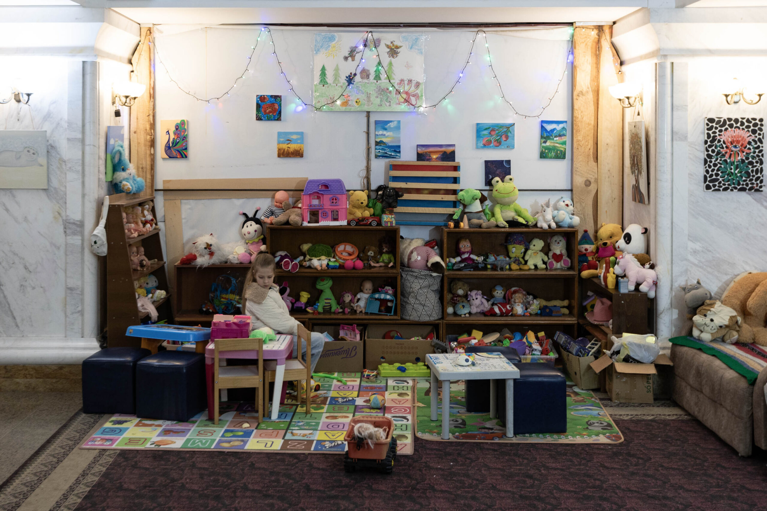— На, вдруг потом захочешь, — девочка лет пяти протягивает папе конфету. У нее в руке черный игрушечный пистолет, периодически она в кого-нибудь целится. Вместе с младшим братом девочка играет в детском уголке центра для украинских беженцев в Тбилиси «Змiни На Краще».