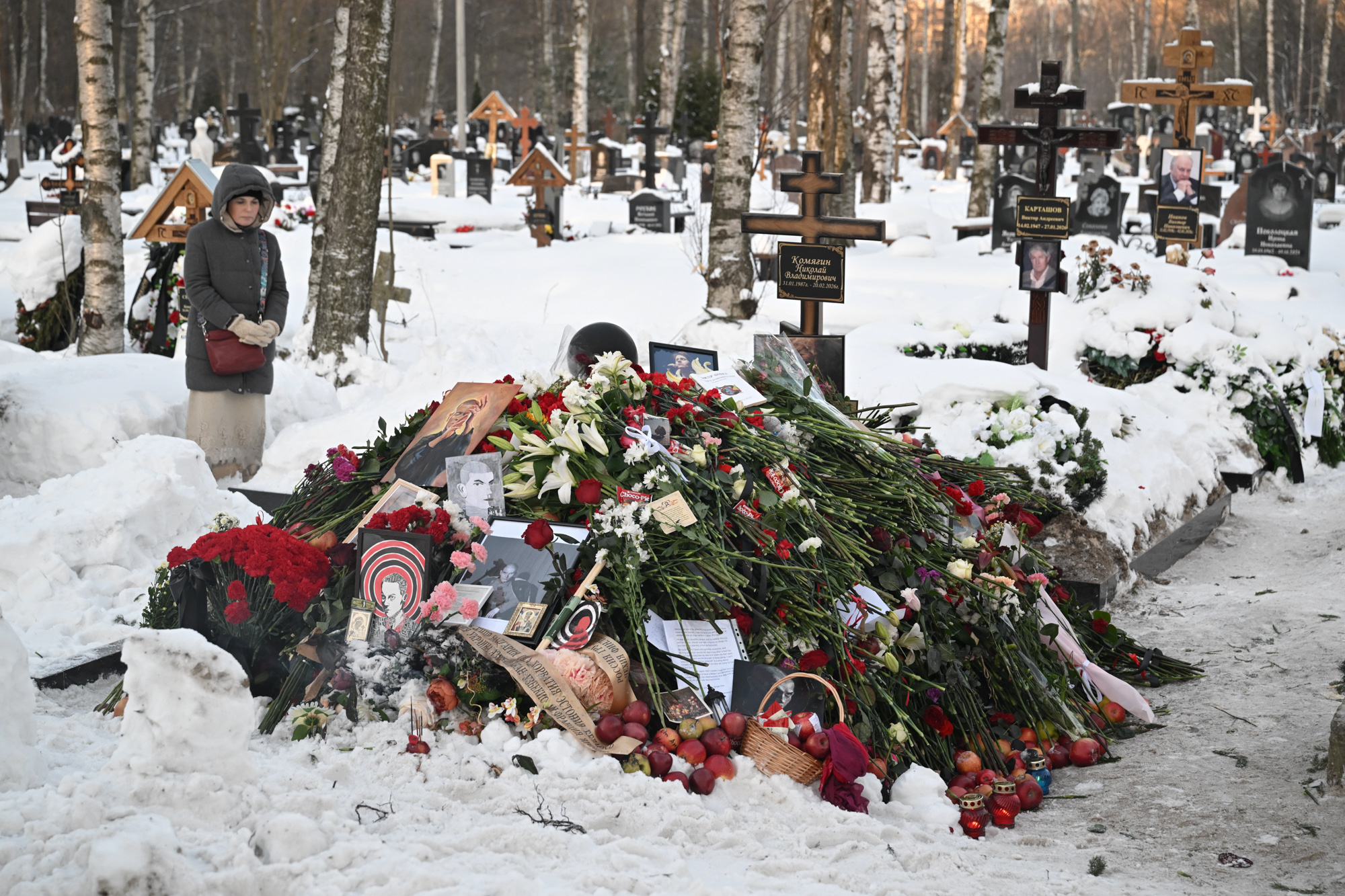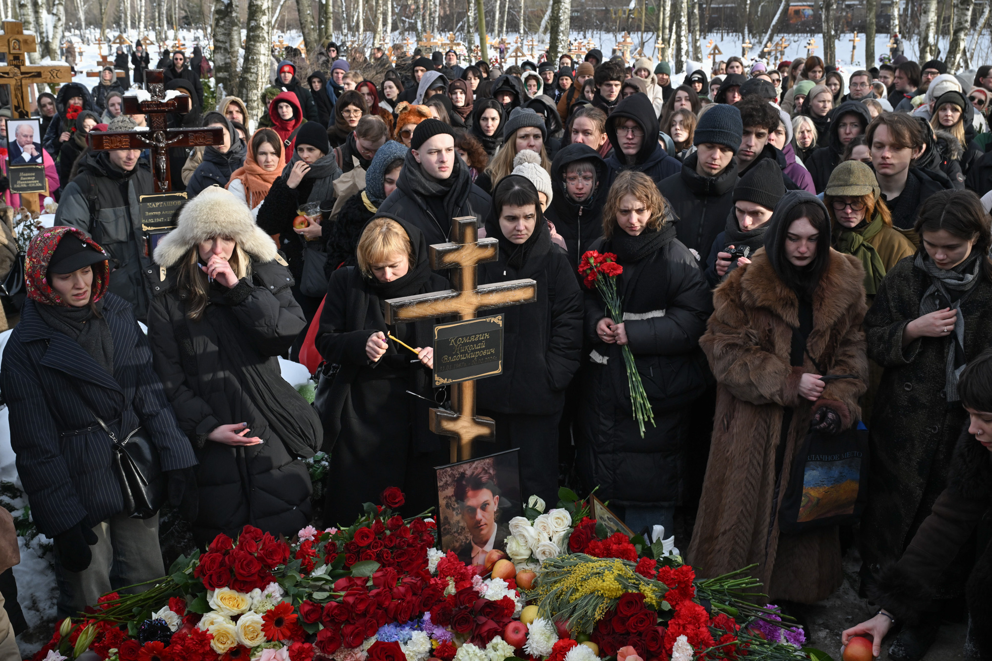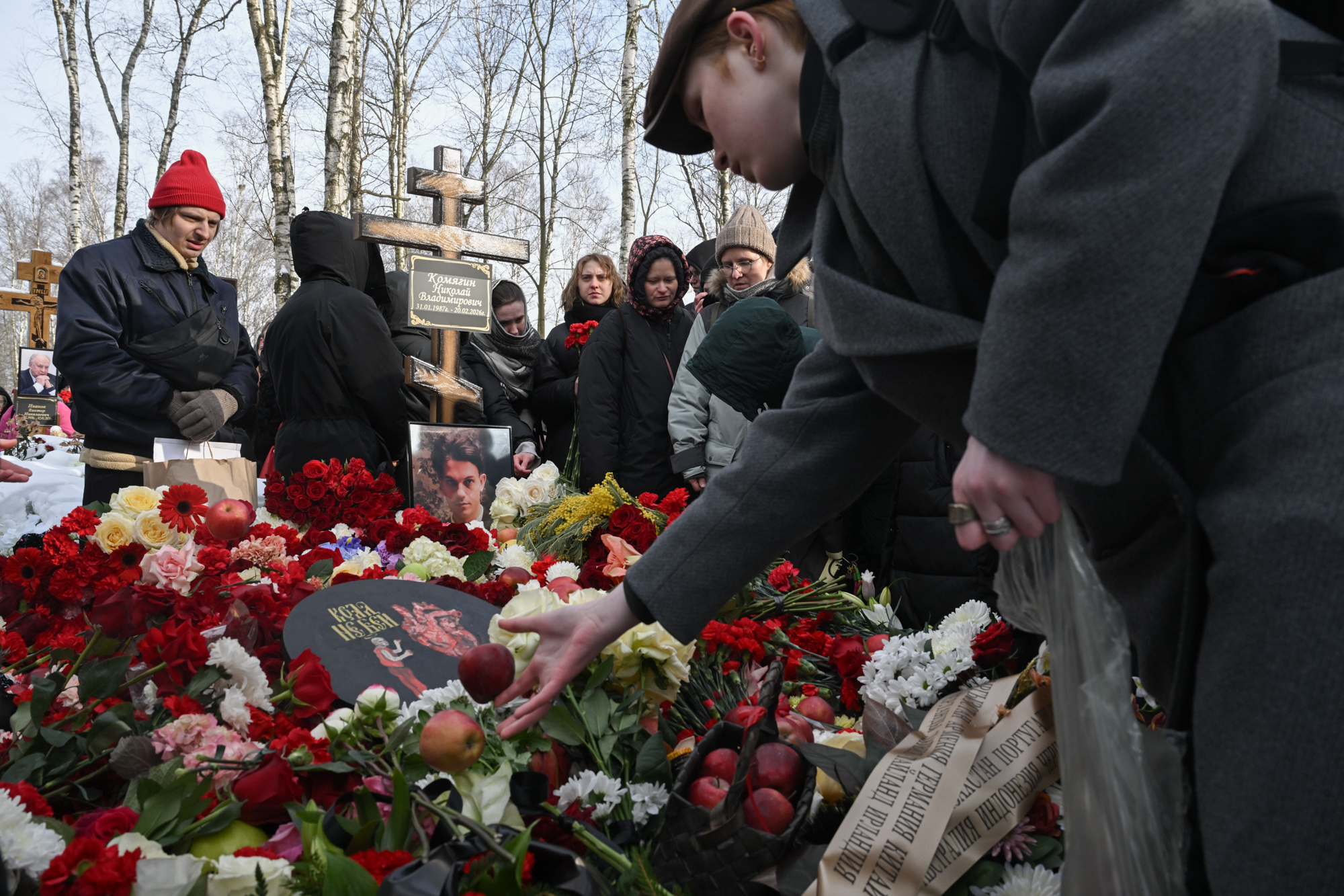 На Смоленском кладбище похоронили вокалиста группы Shortparis Николая Комягина. Проститься с ним пришли сотни людей. Помимо цветов, у могилы оставляли яблоки — это отсылка к песне Shortparis «Яблонный сад» (клип на нее музыканты выпустили вместе с Хором ветеранов ВОВ вскоре после начала войны в Украине, против которой весной 2022-го открыто выступил Комягин).