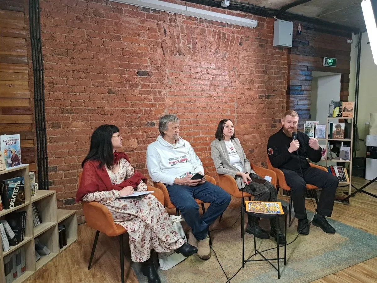 «Я, конечно, не Михалков и не Чуковский, но и у меня была попытка детской книжки», — скромно начала писательница Нина Дьякова, тем самым похоронив всю дальнейшую дискуссию. А взявший микрофон после нее Дмитрий Артис — Z-поэт и писатель, не способный говорить без сворачивания в сторону описаний своего боевого опыта, — естественно, заговорил на тему специальной военной операции в детской литературе. Он сказал: главная проблема в том, что писатели лишают книги исторических моментов (читать как «не пишут про СВО»), — а если чего-то нет в литературе, значит, этого не было. Мысли о том, что новым поколениям россиян может не очень хочется читать про «все вот это вот», у него не возникло. Он вообще считает отсутствие литературы о детях из прифронтовых поселков историческим геноцидом. Его прогноз: в будущем дети большого тыла (писатель так называет детей, которые живут в российских городах, где не проходят военные действия) и дети фронта (новые территории и приграничье) будут враждебно относиться друг к другу — но он собирается это предотвратить, объединив детей мира и детей *** в литературе. На эту тему, к слову, высказывались почти все ораторы — они считают объединение двух миров и двух детств своей центральной задачей.