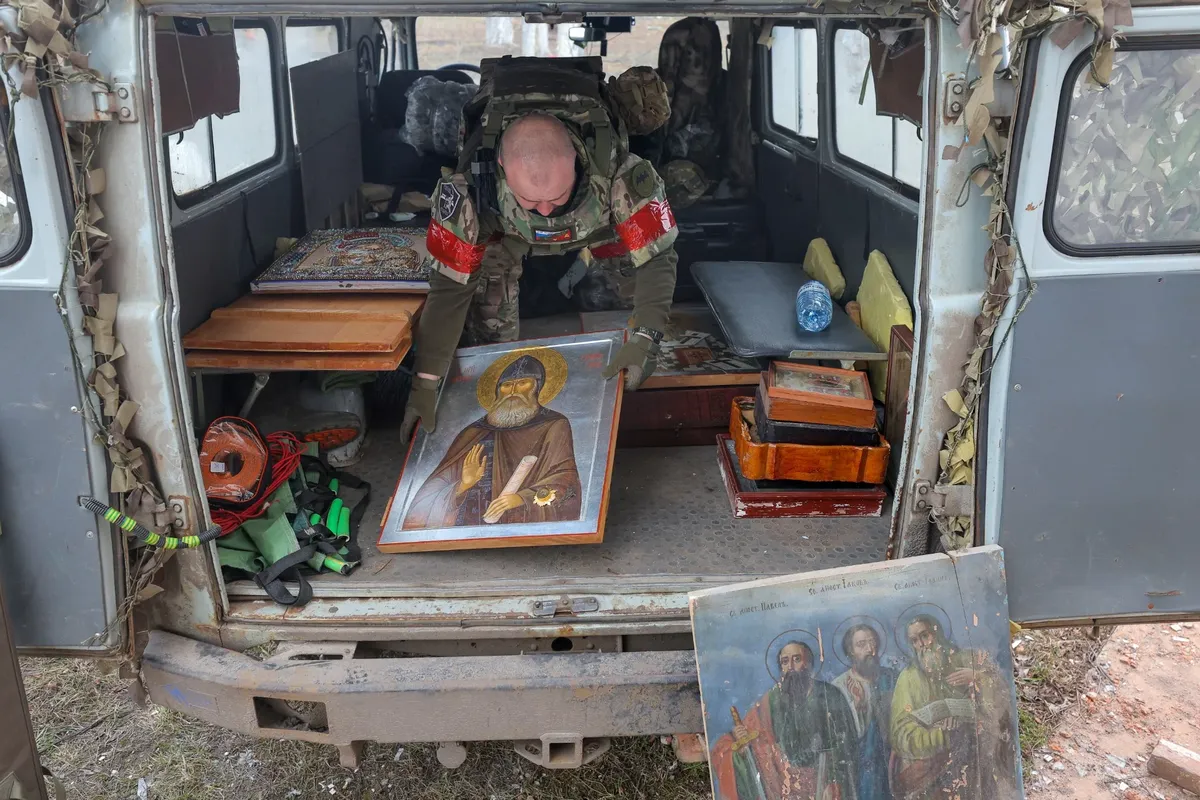 Эта тенденция хорошо заметна по тому, как меняется визуальный ряд РПЦ — иконы, фрески, мозаики, — то, что многие века формировало сокровищницу православной культуры, «богословие в красках». Первой ласточкой стали росписи «главного храма ВС РФ» в подмосковном парке «Патриот», о которых рассказывала «Новая». 14 февраля губернатор Псковской области Михаил Ведерников лично призвал поклониться новым «иконам с героями СВО», размещенным в псковском храме Космы и Дамиана — памятнике XV века. В парах со своими небесными покровителями — святыми Николаем и Рустиком — на иконах изображены прапорщик Николай Савченко и старший лейтенант Руслан Шейка, погибшие в Луганской области.