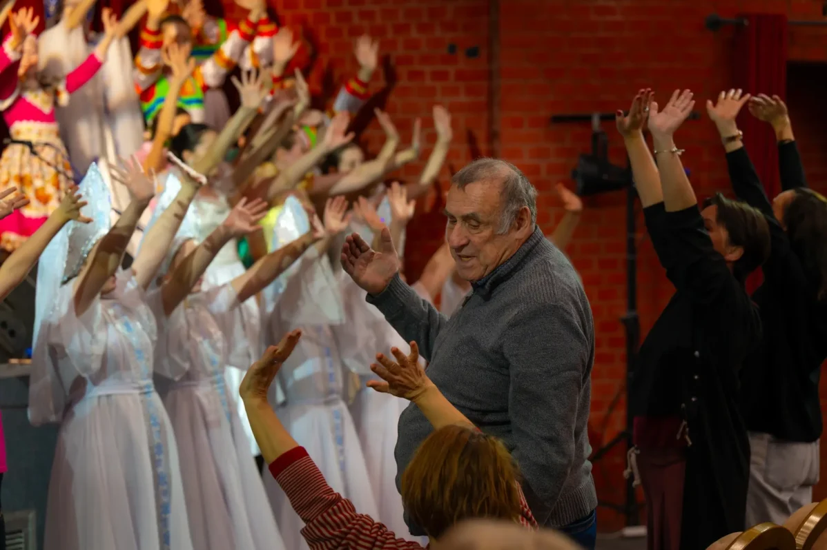 Фото: Штейнберг с детьми из отряда «Надежда» на репетиции предновогодней сказки 30 декабря 2025 года. С. Плотников