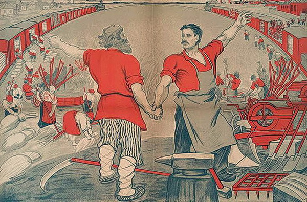 Советский плакат. «Неразрывный союз рабочих и крестьян», неизвестный художник, 1920 г