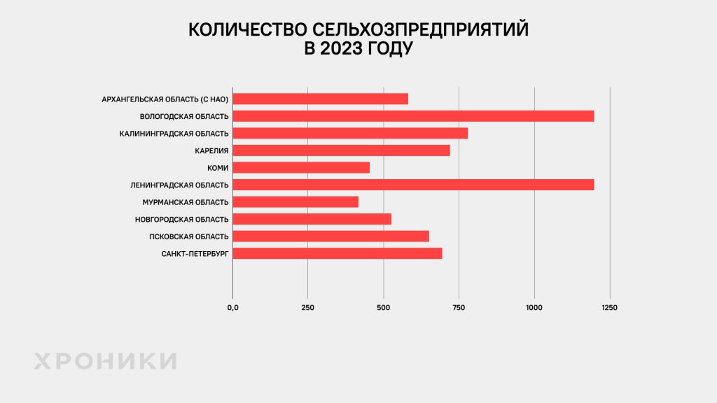 При этом по количеству сельхозпредприятий на 2023 года регионы СЗФО выстраиваются так*: